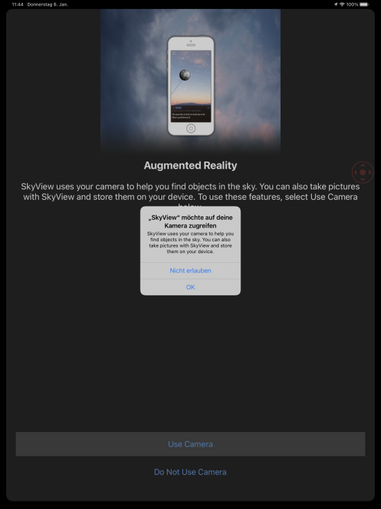 Erlaubnis für die Verwendung der Kamera geben. „Use Camera“ tippen.
