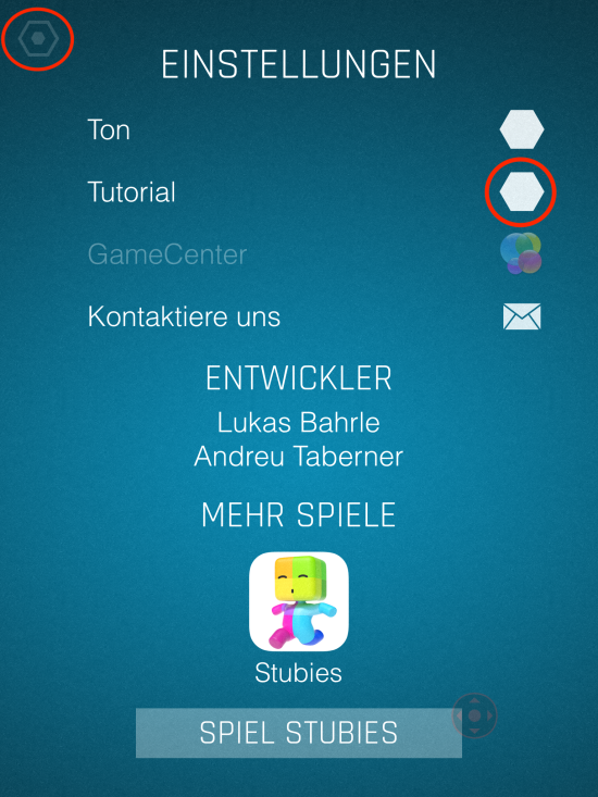 Wähle Tutorial an und gehe zum Spiel zurück.