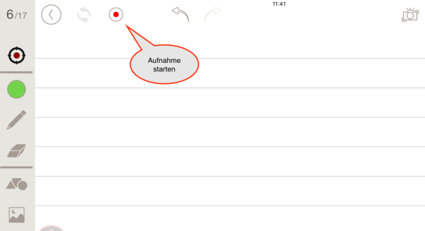 Sobald du die Präsentation erstellt hast, kannst du auf den Aufnahmeknopf tippen. Nun wird das Bild und der Ton als Video aufgenommen.
