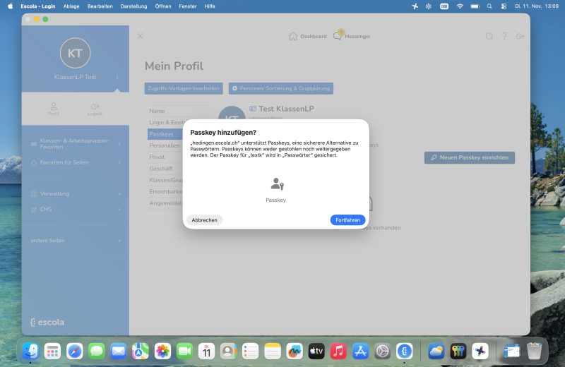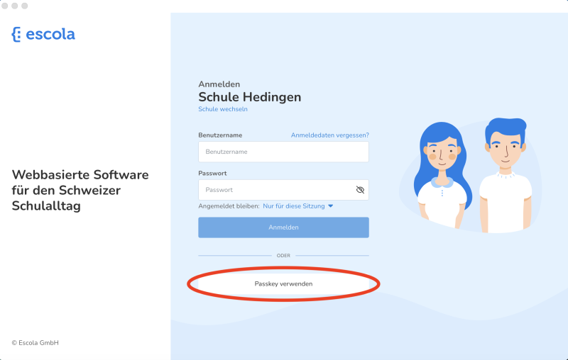 Damit du das Passwort von deinem Escola-Account nicht behalten muss, kannst du für Escola Passkeys einrichten.