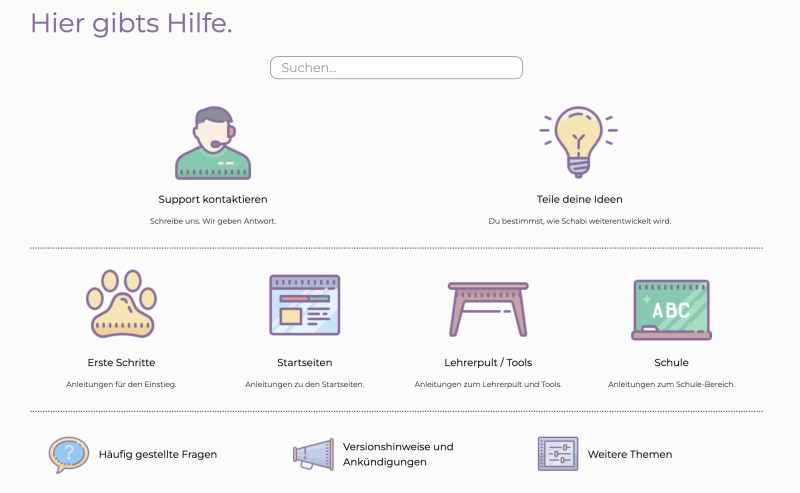 - Lehrerpult/Tools - Als Erweiterung bietet Schabi Hausaufgabenlisten, Arbeitspläne, einen Creator und noch anderes an. Hier findest du die Einführungen zu den einzelenen Erweiterungen.