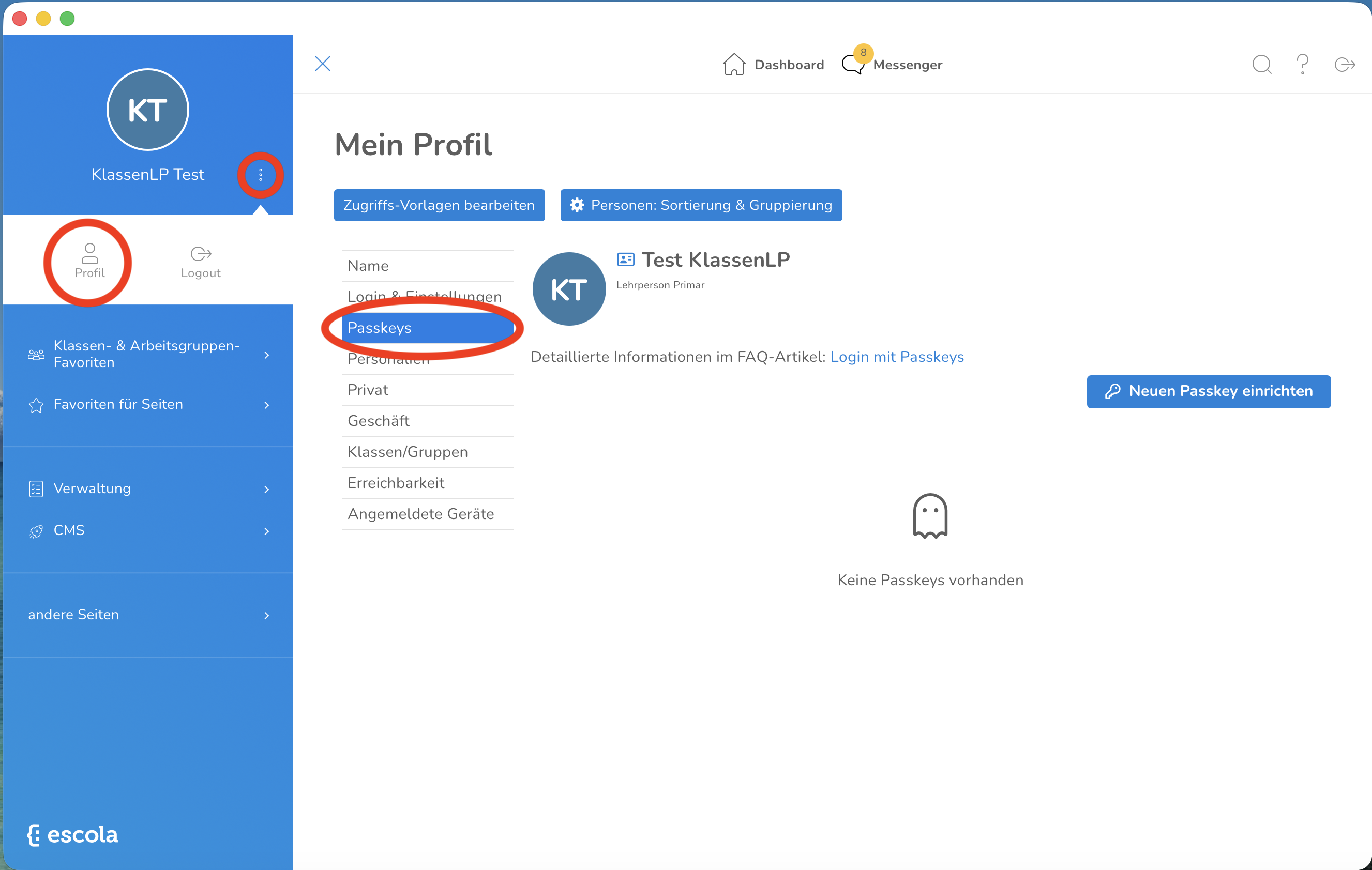 - Escola Passkeys einrichten