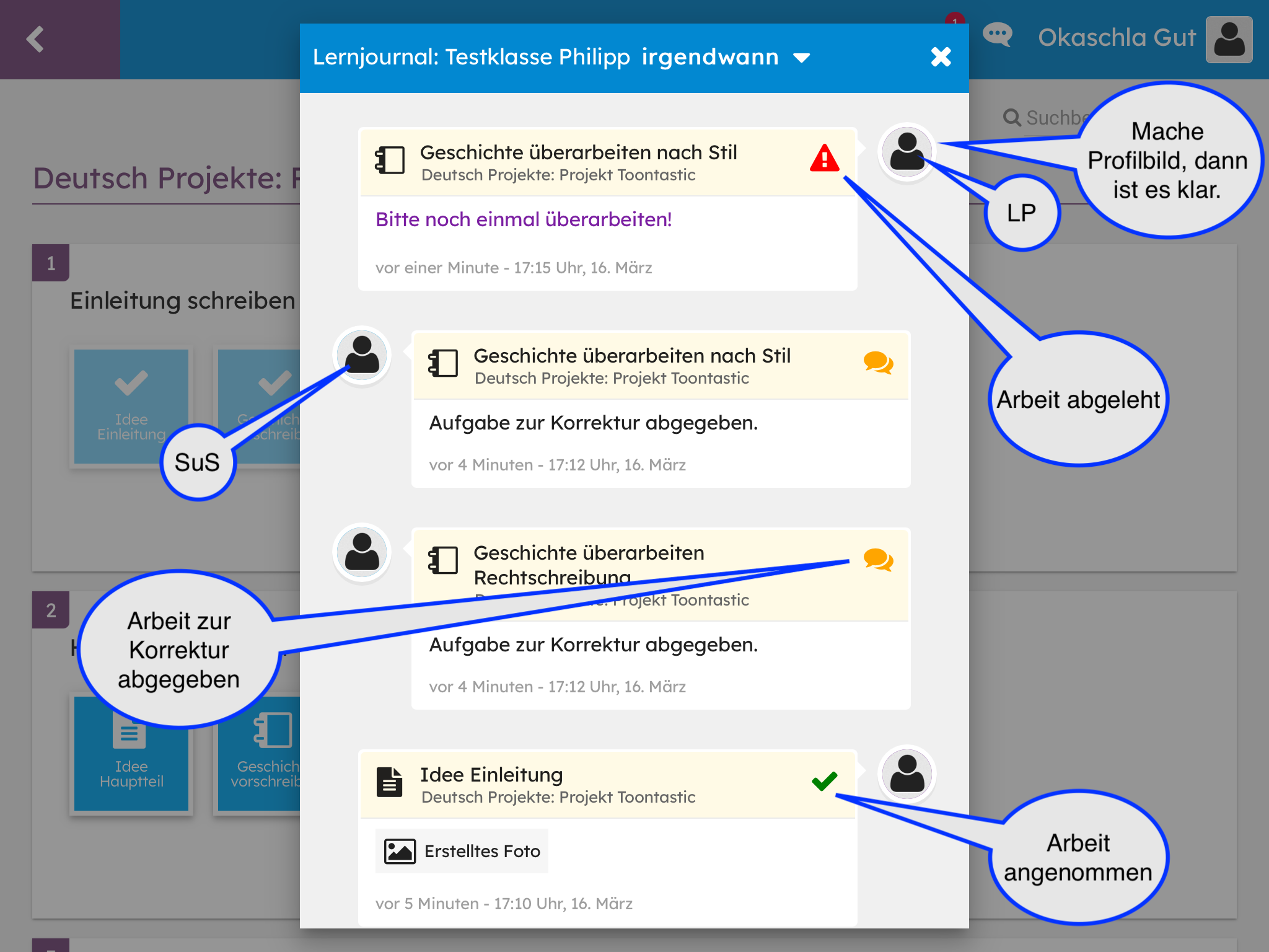 LearningView - Plattform Schülerinnen und Schüler - Symbole Ansicht Lernjournal