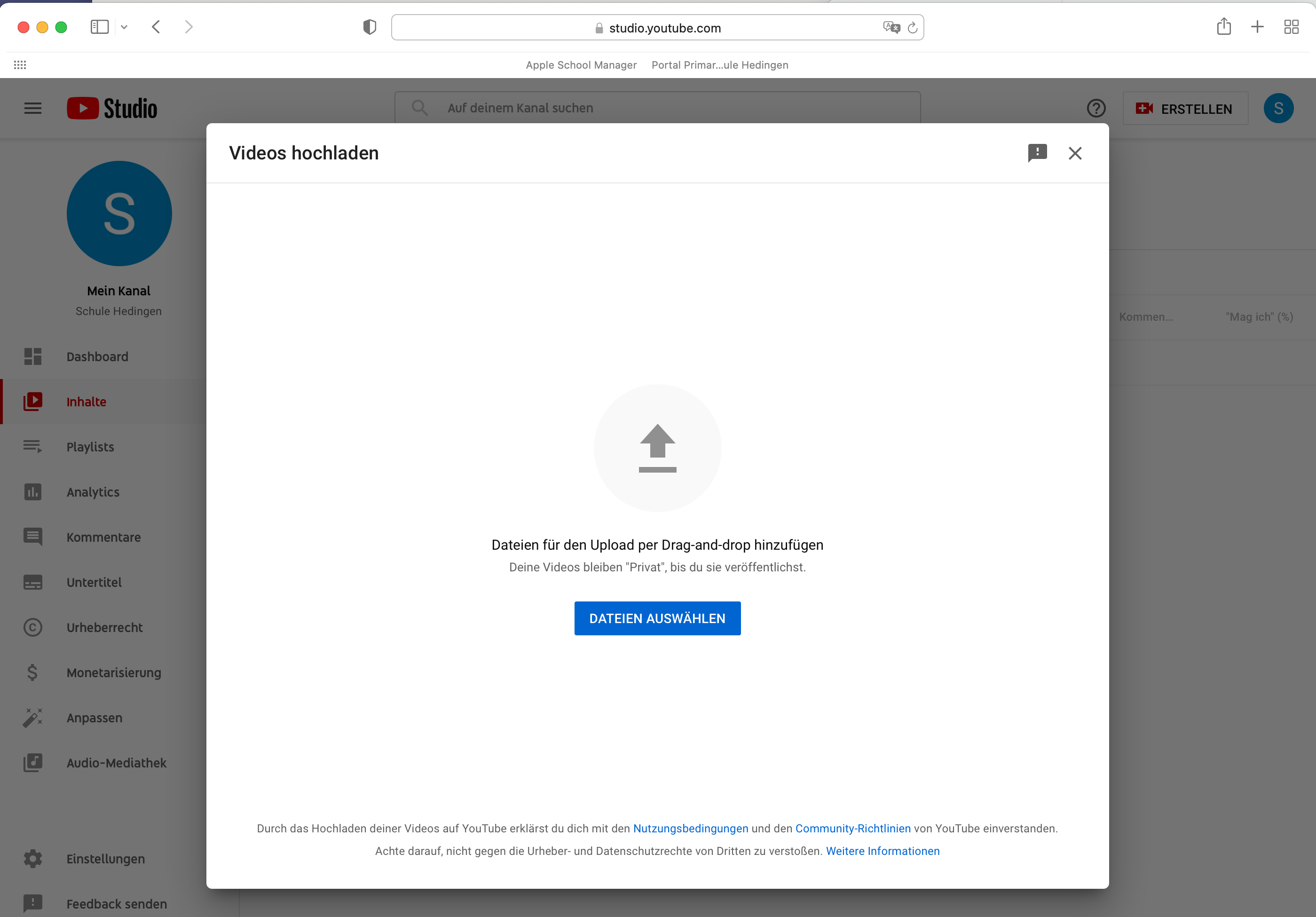 - Youtube - Video hochladen und Einstellungen wählen