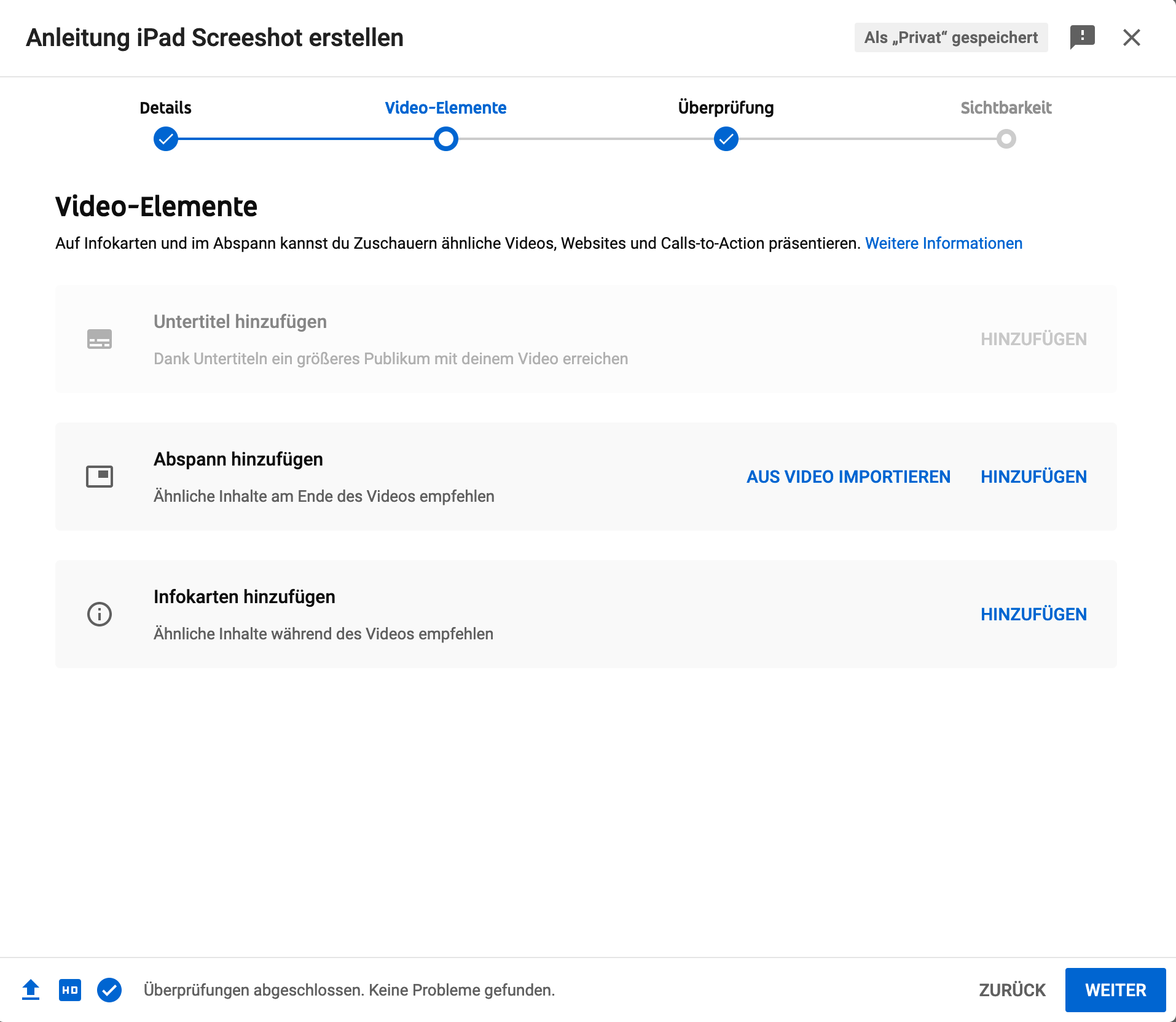- Youtube - Video hochladen und Einstellungen wählen