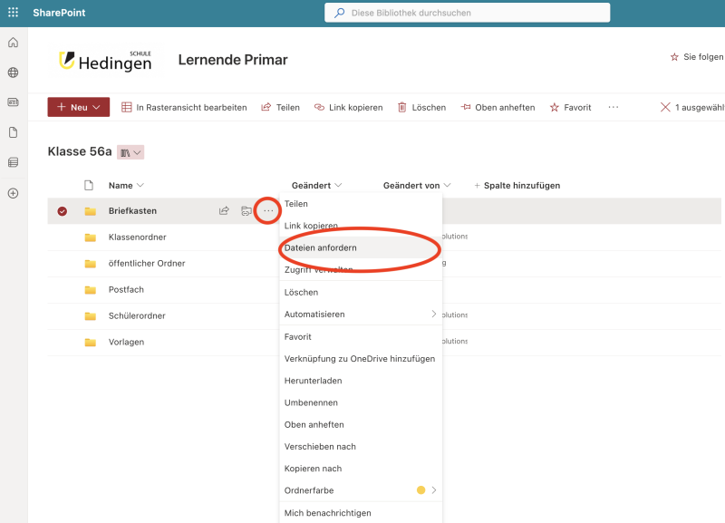 Mit einem Briefkasten kannst du einen Ordner auf Sharepoint zur Verfügung stellen. Dort können die Schülerinnen und Schüler Dateien ablegeben, ohne dass sie andere Dateien sehen oder ihre Datei später nochmals überarbeiten können.