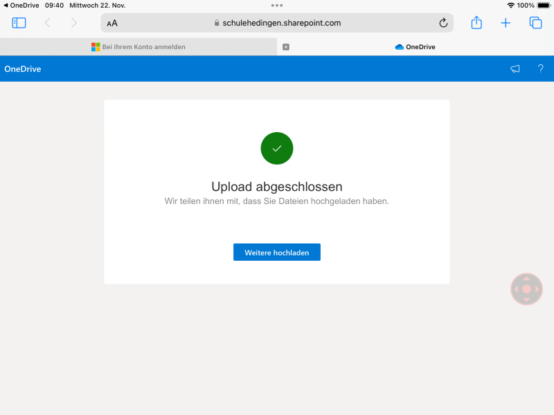 Auf dem iPad kann es vorkommen, dass bei tippen des Link die OneDriveApp öffnet und der Anmeldedialog kommt, den es dafür nicht braucht. In diesem Fall im Browser öffen tippen.
